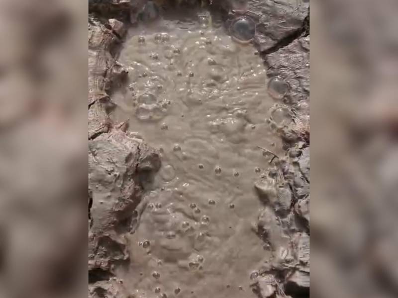 Pantauan di lokasi menunjukkan gelembung berukuran kecil hingga sedang muncul secara stabil dari dasar lumpur.