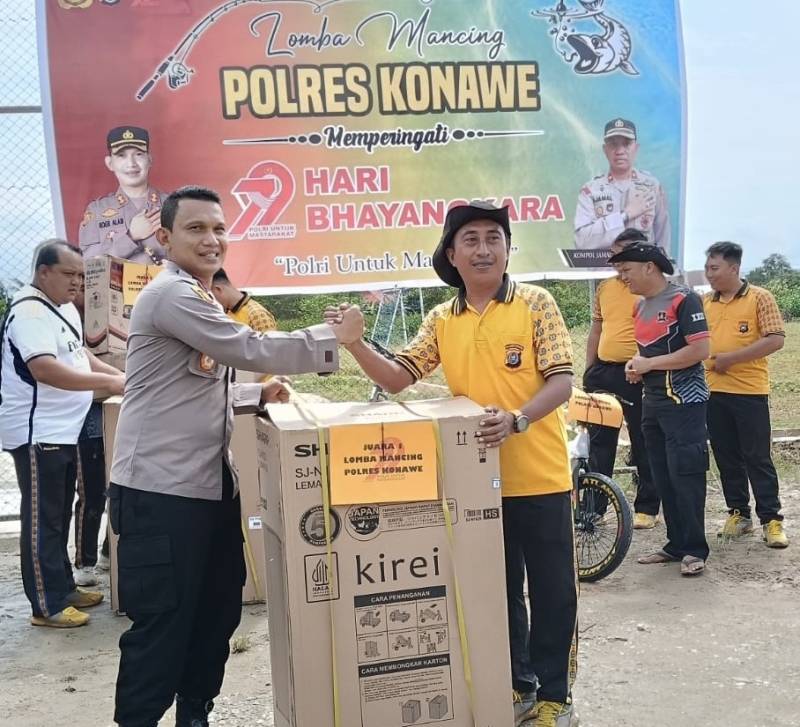 AIPTU Awaluddin dari Polsek Unaaha keluar sebagai juara pertama usai berhasil mengangkat ikan terberat. Ia menerima hadiah utama berupa kulkas yang diserahkan langsung oleh Kapolres Konawe, AKBP Noer Alam.